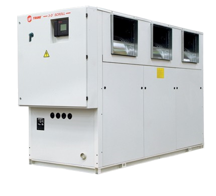 temperatures of 0 to 125°F. A Trane scroll chiller is equipped with